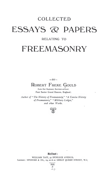 Robert Freke Gould- Collected Essays & Papers Relating to Freemasonry