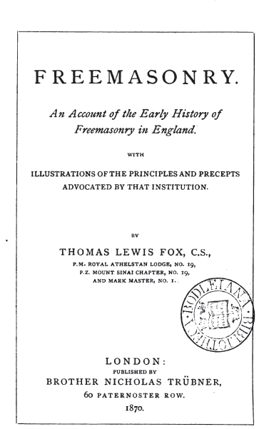 Thomas Lewis Fox -An Account of the Early History of Freemasonry in England 1870