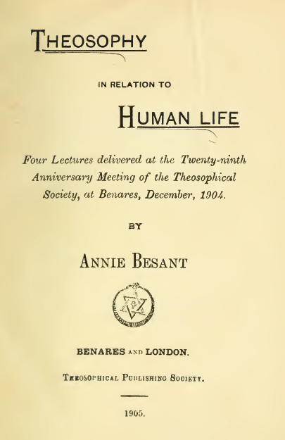 Annie Besant - Theosophy in Relation to The Human Life
